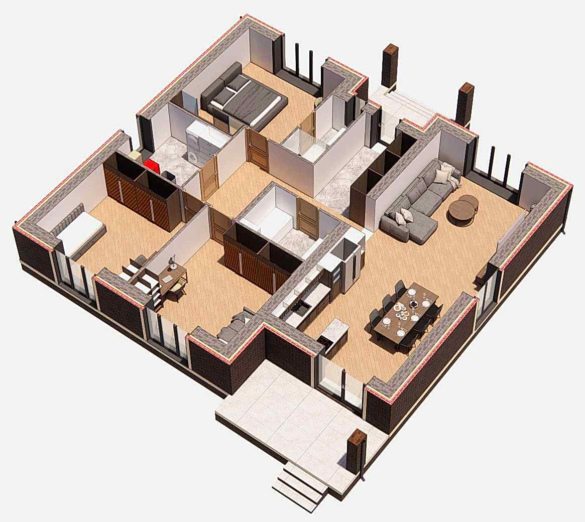 | Фасад | облицовочный кирпич |